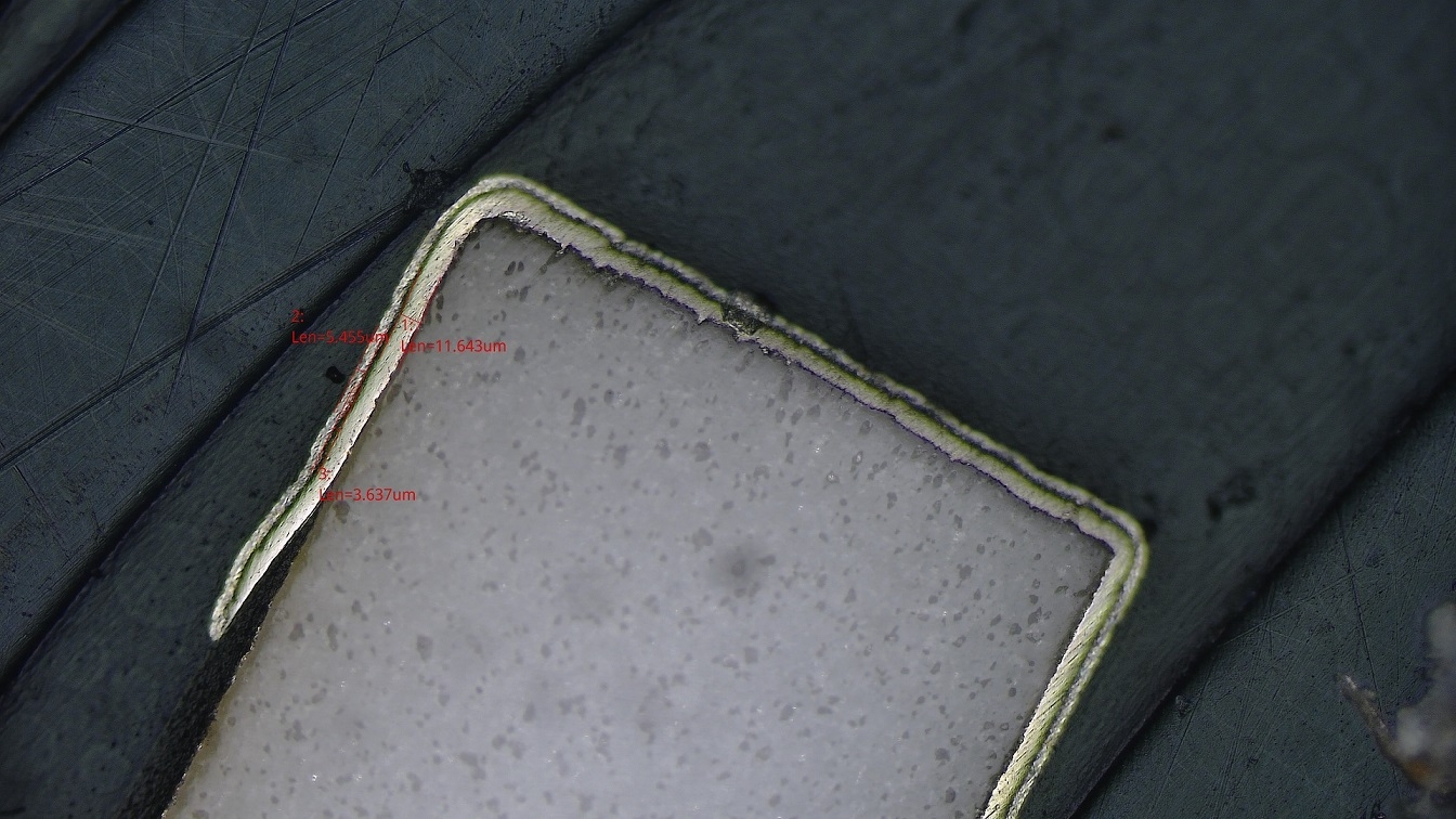 產(chǎn)品材料切片并進(jìn)行磨拋后進(jìn)行檢測(cè)